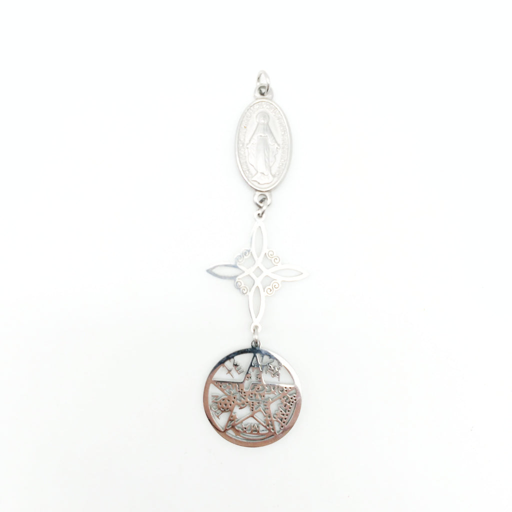 Talismán de acero inoxidable que encarna la tríada sagrada de la protección espiritual. Este colgante fusiona la fortaleza del metal noble con la energía ancestral de tres símbolos protectores, creando un escudo energético contra las influencias negativas. Cada elemento representa una dimensión diferente de la defensa: física, emocional y espiritual. Diseñado para quien busca mantener su aura blindada mientras transita por los caminos de la vida cotidiana, este accesorio se convierte en un guardián silencioso de tu bienestar integral. Su composición en acero garantiza durabilidad y resistencia, permitiendo que la protección acompañe tu jornada sin interrupciones.