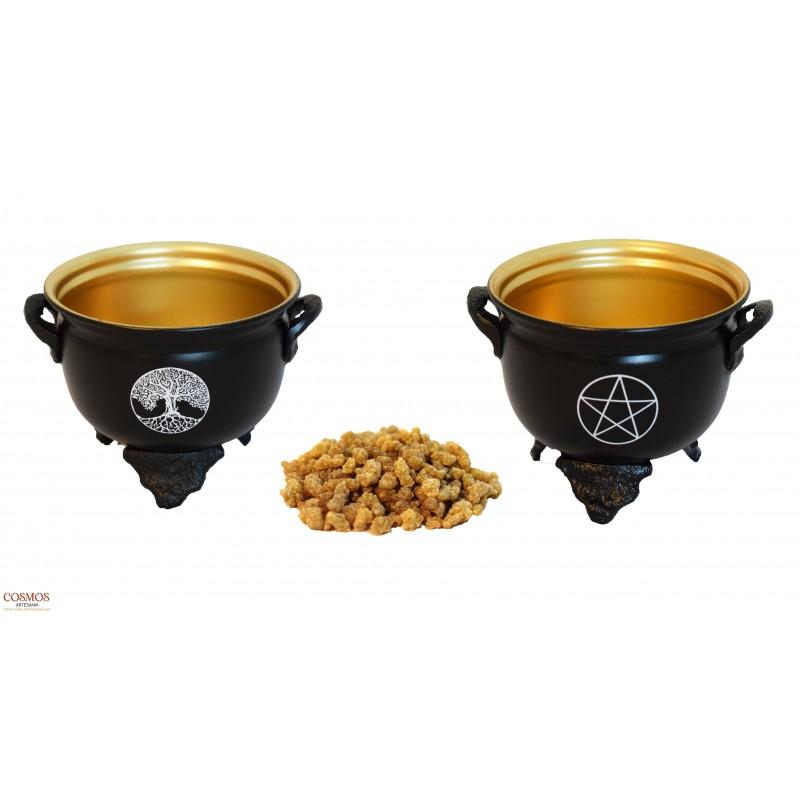 El quemador de grano Caldero Hierro, con su base en un cálido tono dorado, es una pieza que evoca la energía ancestral del fuego y la tierra. Su diseño robusto y su acabado metálico invitan a una experiencia profunda y ritualística, ideal para quienes buscan conectar con la esencia natural y transformar su espacio en un santuario de armonía y poder. Este quemador no solo cumple una función práctica, sino que también actúa como un canal para la purificación y la elevación espiritual.
